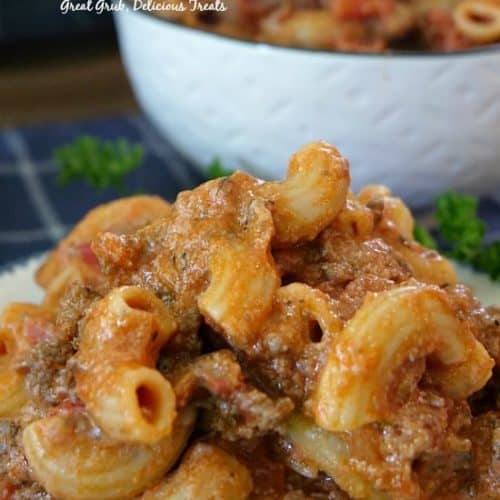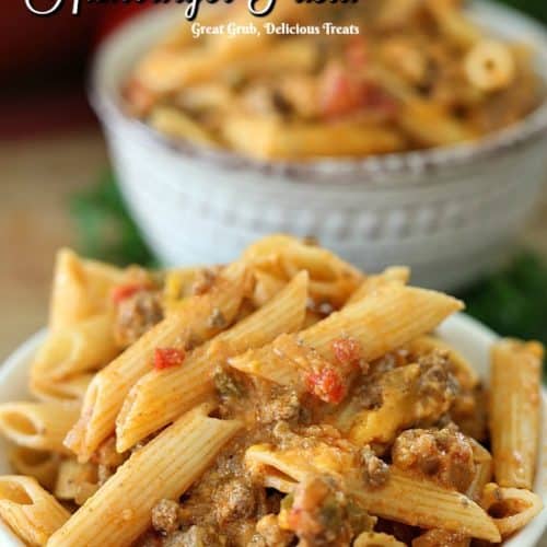 This hearty, meaty, cheesy pasta dish is as easy to make as it is delicious. It starts with spicy Italian sausage, onions, and garlic which I cook to perfection. Then, I add diced tomatoes, and water and bring it all to a boil. Finally, I add cooked pasta and cheese, and I give it a good stir. That’s all there is to it! Then, it’s just a matter of enjoying all that flavor. It only takes two pots, and it’s all ready in just a few minutes. Delicious and easy? You can’t beat that combination!