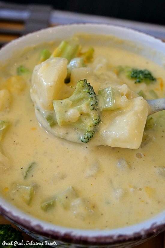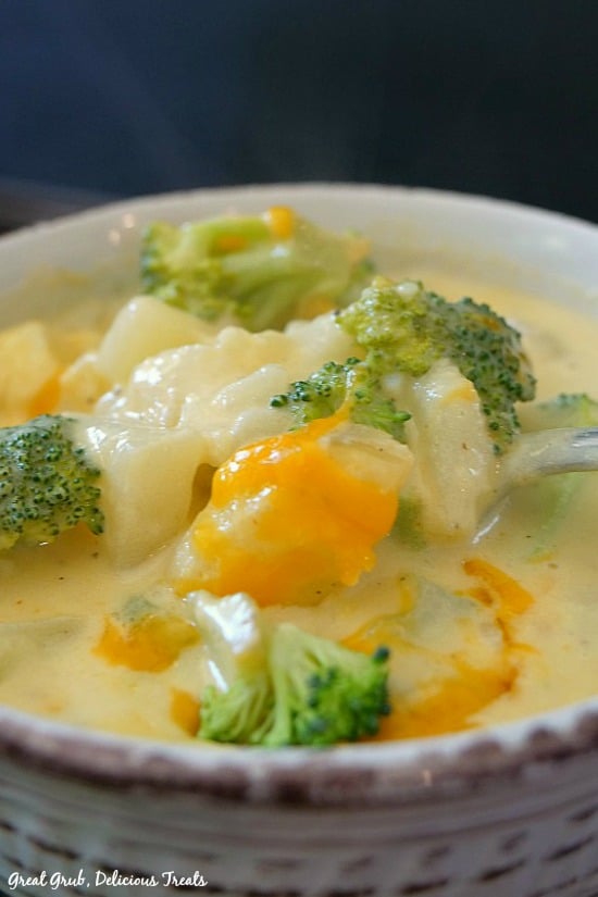 Whether you are looking for a soup for a cold winter night or want something that just feels like a hug, you love this easy and delicious soup. Filled with a creamy, cheesy broth combined with fresh broccoli and chunks of potatoes. This soup is absolutely perfect anytime of the year.
