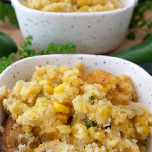 This Hot Corn Salad is another corn recipe that is absolutely delicious. It is so easy to make and made with only 7-ingredients: canned corn, mayonnaise, sour cream, celery, green onions, pepper jack cheese, and chili cheese Fritos.