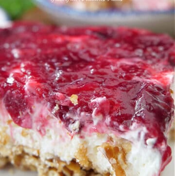 This cranberry pretzel salad is loaded with the salty goodness of pretzels, a light and fluffy sweet cream cheese mixture and the tartness of cranberries with a hint of orange, come together in this unusual, but delicious pretzel salad recipe.