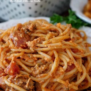 When I reheat this spaghetti and Italian Sausage recipe I love to make sure there are leftovers. As I said, it always tastes even better the next day. To reheat it, I like to reheat it in the oven if I am reheating a lot. If it is just a small amount, about the size of a single portion, it is easier to reheat it in the