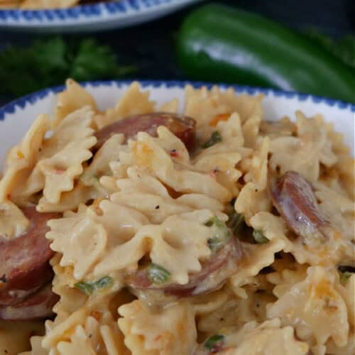 This creamy pasta with chicken is perfect for all you Tex-Mex lovers. Tender chicken, corn, tomatoes, and chiles in a zesty, creamy sauce create a pasta dish loaded with southwestern flavors that brings everyone back for more.
