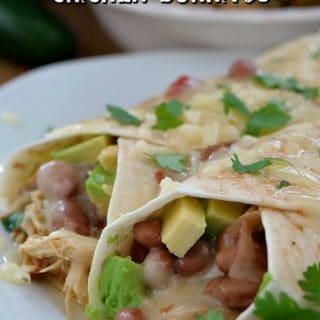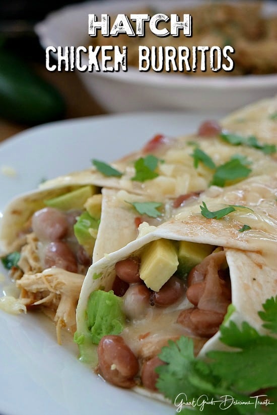 These hatch green chile burritos tastes delicious and make a great meal topped with charro beans, avocado, jack cheese, cilantro and some salsa. I used my crock pot spicy charro beans in this recipe. These charro beans are so flavorful and a favorite with our family and perfect to add to these delicious chicken burritos.