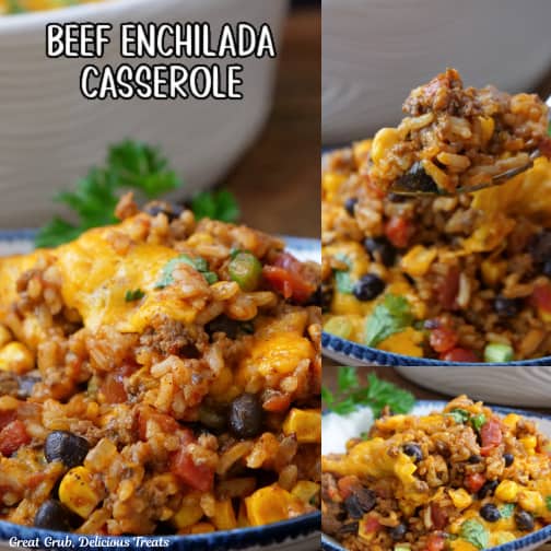 If you love beef enchiladas, but not the hassle of rolling and filling tortillas, then this delicious beef enchilada casserole with rice is the perfect weeknight meal for you! It’s all the delicious flavors in an easy-to-make casserole.