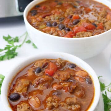 This delicious crock pot chili is bursting with fragrant spices, three types of beans, savory beef and Italian sausage, and is so easy to make. With minimal prep and a few hours of slow-cooked magic, this chili recipe turns simple ingredients into a hearty and satisfying meal the whole family will enjoy.