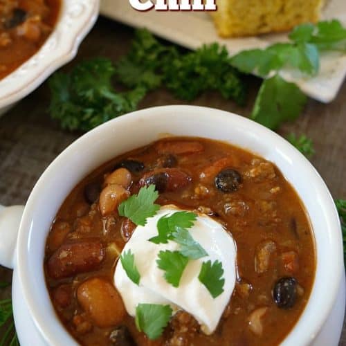 I’m a huge chili fan. I grew up in California, and although a lot of people outside of the state don’t know it, you can find some amazing chili there! Later in life, I moved to Texas, and of course, there’s no shortage of amazing chili recipes here. What that all means is that I love eating AND making chili. And what I really love doing is putting fun new twists on this classic Tex-Mex dish. One of my favorite chili recipes is this one that adds an extra flavorful twist with the addition of Italian sausage and three kinds of beans. It’s a delicious, hearty chili that takes the classic dish and gives it a little oomph that everyone always loves.