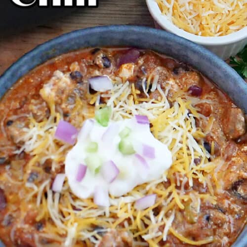 - Top with your favorite chili toppings and serve with cornbread, crusty bread, and a side salad.