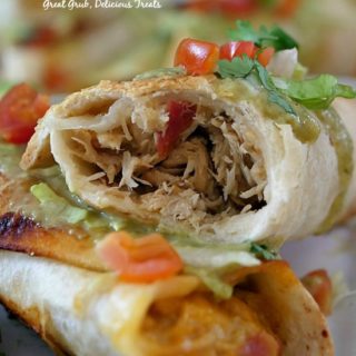 Basically, make the chicken recipe in the crock pot then shred the chicken. Add a few heaping tablespoon of chicken mixture to a flour tortilla. Add some shredded cheese and tightly roll up each tortilla and place, seam side down, on a baking sheet. Continue until you have the desired number of flautas needed. Give a quick spray (of non stick spray) to flautas and pop in the oven. Bake for about 15 minutes, turn once during baking, and then serve with your favorite sides and dipping sauce. That’s it!