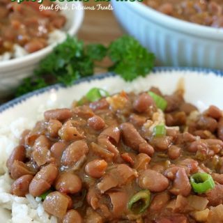 - Serve beans over a bed of rice and top with sour cream, cilantro, green onions, optional.