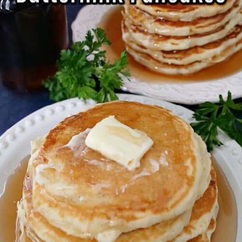 These thick, soft, and fluffy pancakes are made with a classic buttermilk pancake batter, but I spice it up with pumpkin puree, pumpkin spice, ground cinnamon, ground nutmeg, and ground cloves for that classic fall flavor. I make the batter, being careful not to overmix it, then I make my pancakes on a hot griddle. The secret is to only flip them once! When they’re done, I serve them with syrup. The combination of rich, pumpkin flavor with the sweet syrup is just about the best way to start the day on a cold fall or winter morning, and you’ll love the flavor of real, honest-to-goodness pumpkin spice!