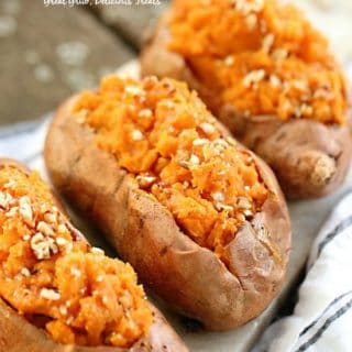 What I love most about this delicious sweet potato recipe is that I really don’t have to do a ton of prep work. The biggest thing that I really have to worry about is making certain to scrub the outside of my sweet potato really well before popping it into the oven. Once I make certain that I’ve got all the dirt and germs off, it’s really smooth sailing from there.