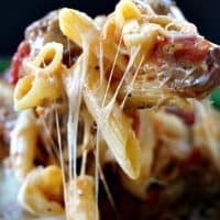 Add sausage mixture to pan with pasta.